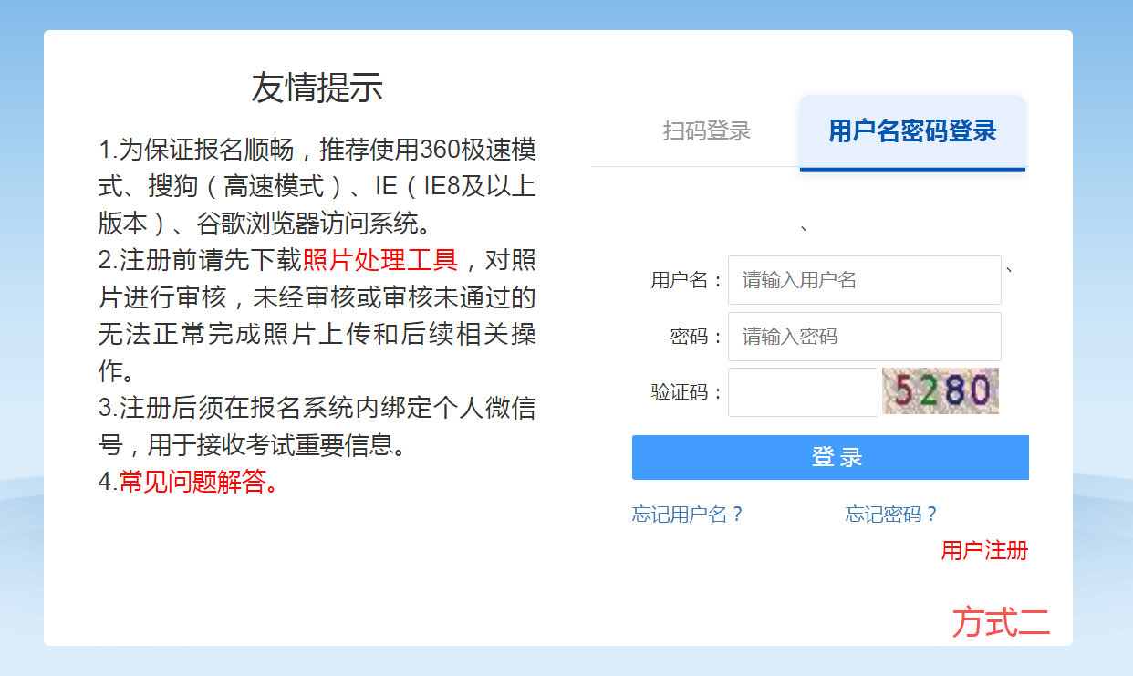 方式二:输入用户名、密码登录报名系统。